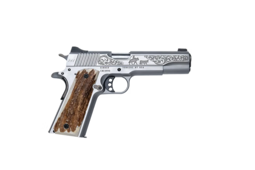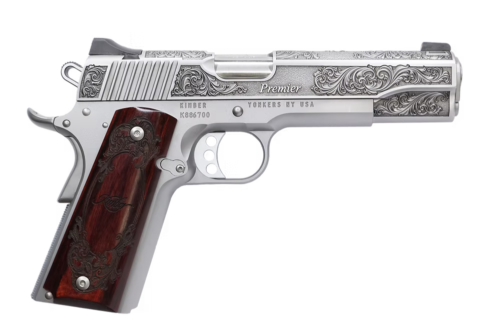 KIMBER 1911 PREMIER 45ACP PISTOL 5″ STAINLESS ENGRAVED, ENGRAVED ROSEWOOD GRIP 1-7RD 1 OF 200