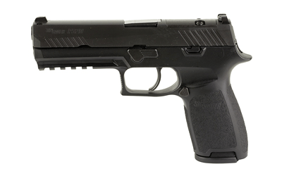 The P320 Full-Size offers a smooth, crisp trigger to make any shooter more accurate, an intuitive, 3-point takedown and unmatched modularity to fit any shooter and any situation. Its full-size frame is ideal for target shooting, home defense and any scenario where shootability and sighted accuracy are of the highest priority. This modular, striker-fired pistol features a full-size grip, full length slide, and SIGLite font and rear night sights. Chambered in 9mm Lugar. Safety features include a striker safety and disconnect safety.